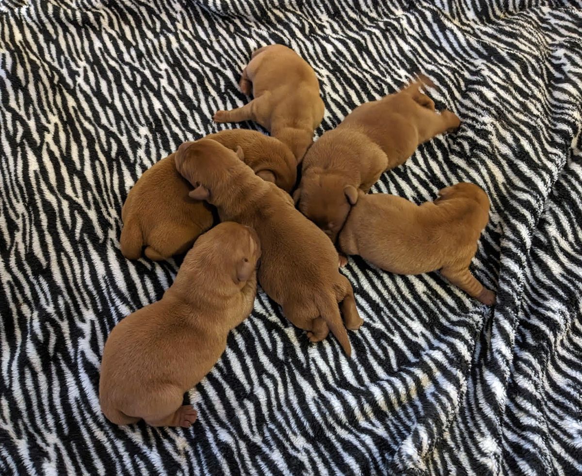 The Dam is our Reba and the Sire is Lariat from Country Labs, Price per puppy is $2,900. with a $500 deposit required to reserve a puppy. All puppies are sold with limited AKC, registration. Date of birth: 10/29/25 Go home date: 12/24/25.